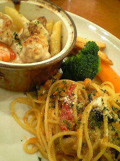 パスタ&グラタンのコンビセット(ドリンク付)+シーザーサラダ。←結構大盛り