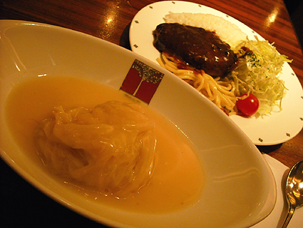 ロールキャベツで有名な「アカシア」で、ロールキャベツとハンバーグのセットを食べました。