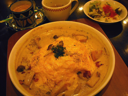 で、ポルチーニのクリームシチューオムライスてのを食べた。